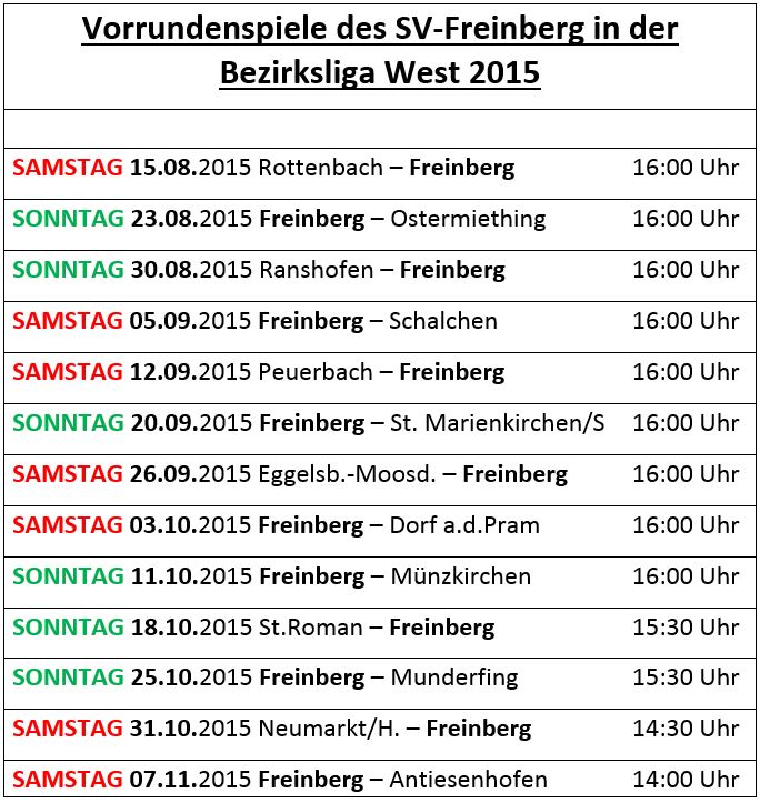 In der kommenden Vorrunde müssen sich die Freinberger Fans zeitlich ein wenig umstellen, weil viele Spiele am Samstag stattfinden werden. Zur Unterstützung hat der Sektionsleiter diese Übersicht erstellt.