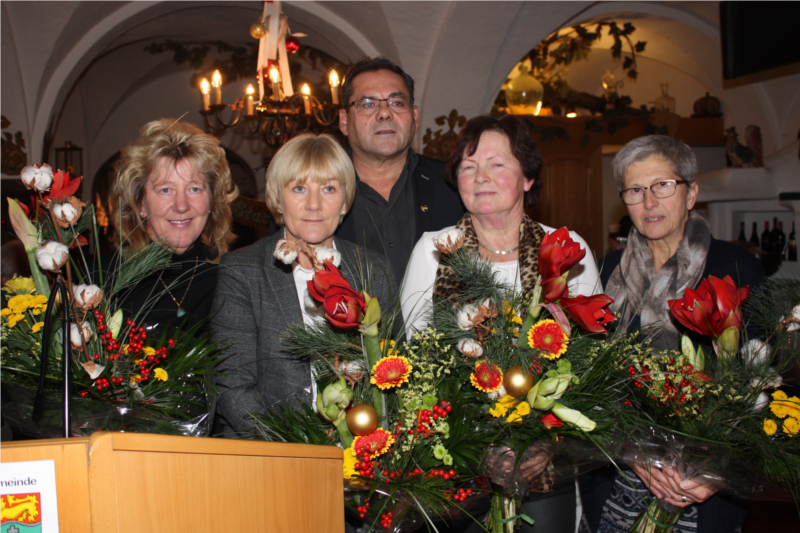 Obmann Rudi Kasbauer und sein Stellvertreter Florian Gimplinger bedankten sich bei einigen Sportfreunden und verdienten Funktionären. Sicherlich besonders schön, aber auch mehr als verdient, die Ehrung unserer weiblichen Garde, die über das gesamte Jahr mit ständigem Einsatz, enormen Fleiß und großartigen Gerichten einen entscheidenden Anteil für den Erfolg des Gesamtvereins leisteten. Ein besonderer Eintrag im Geschichtsbuch des SVF sollte Kasbauer Vroni, Wiesner Martha, Friedl Poldi und Bergmair Margit sicher sein. Auf unserem Bild bedankt sich unser Obmann für diese enorme Unterstützung des Vereinslebens.