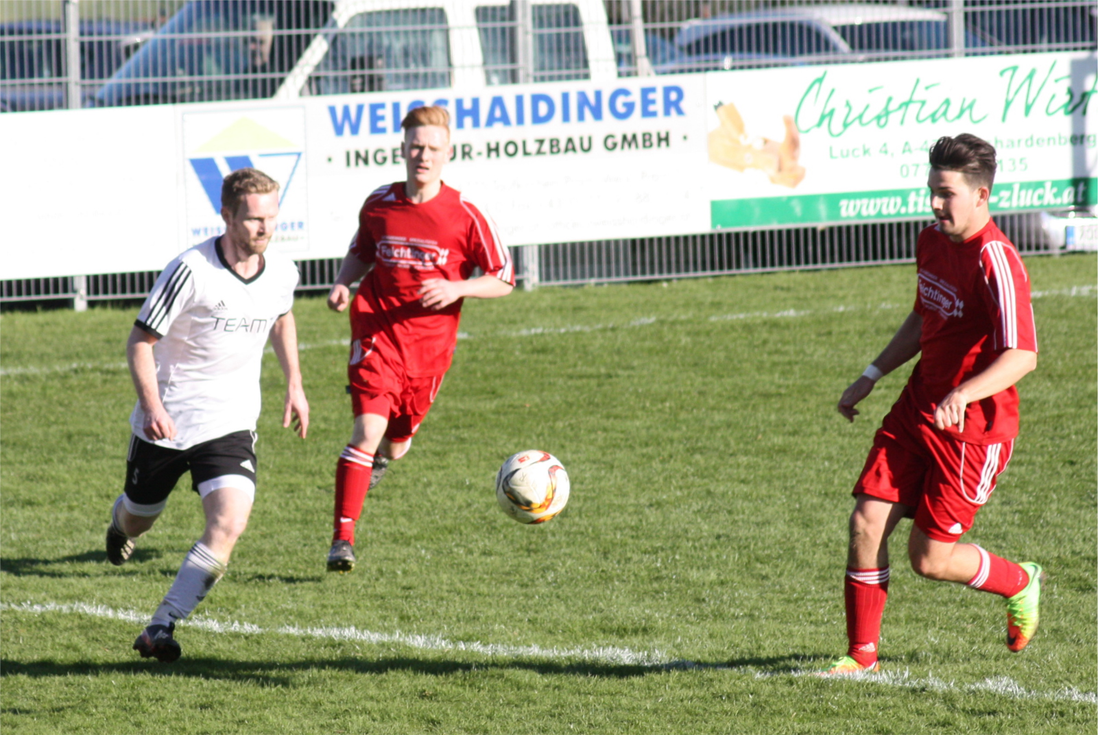 Bei herrlichstem Fußballwetter war es der SVF, der von Beginn an das Heft in die Hand nahm. Rainbach konnte nur kämpferisch dagegen halten, Freinberg war am Drücker, ohne aber die ganz großen Akzente zu setzen. Trainer Markus Haas hatte zwei seiner neuen Aktiven in der Startelf und diese konnten durchaus überzeugen. Der SVF hatte eine neue Spielkultur, Gabor Demjen, Vaclav Mrkvicka und auch Tomm Sergej harmonierten prächtig und gerade Letzterer sorgte mit enormem Laufpensum für Druck über die rechte Außenbahn. Kapitän Hofer agierte mit hervorragendem Stellungsspiel und großartigen Eröffnungen. Die Mannschaft war durchgehend agil und es gab keinen Leistungsabfall im Team. So war es auch kein Wunder, dass der SVF die ersten Möglichkeiten vorfand. Nach einer Ecke zischte Langenbachs Schuss nur knapp am oberen rechten Dreieck vorbei ins Aus. In der 13. Minute unser erster Glücksmoment. Freistoß aus dem Halbfeld, der Ball geht an einem SVF-Angreifer vorbei, doch Engertsberger Rene ist mit dem Kopf zur Stelle und setzt den Ball zum 0:1 ins lange Eck. Der zahlreiche Freinberger Anhang und die Aktiven jubeln. Danach geht es im Mittelfeld hin und her, ohne dass aber brenzlige Situationen entstehen. Erst nach knapp einer halben Stunde taucht der Gastgeber erstmals vor unserem Tor auf. Freinberg erspielt sich in der Folge in dieser kampfbetonten Partie einige kleinere Möglichkeiten, Rainbach kann nur mit Einsatz glänzen. Als der Schiri unmittelbar vor dem Pausenpfiff wieder einmal unser Team benachteiligt und einen Freistoß am linken 16er-Eck pfeift, wird es gefährlich. Den Direktschuss kann unser sehr gut aufgelegter Goalie, Gerald Haas, mit Mühe und Können entschärfen.