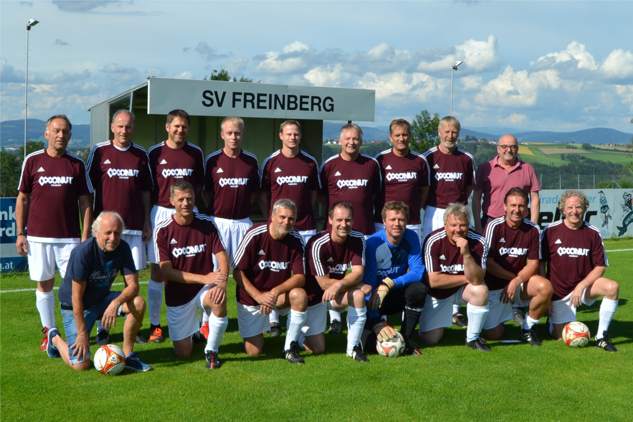Die AH-Mannschaft bedankt sich recht herzlich bei Wilfried Fuchs (stehend rechts) für eine Garnitur neuer Dressen. Wir hoffen, dass unsere ältesten Jungs in den schnittigen Dressen viele Siege einfahren werden, die dem Spender und der Cocktailbar Coconut in Passau zur Ehre gereichen.