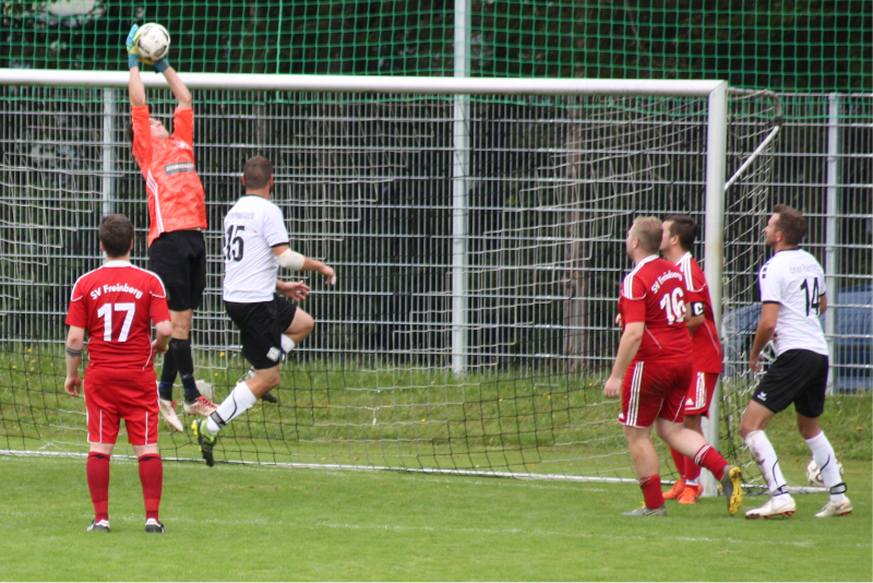 Mancher Fan rieb sich bereits vor dem Anpfiff die Augen. Sollte tatsächlich Alt-Star Gerald Haas als Vertreter der verhinderten Stammtorhüter ins Freinberger Gehäuse zurückkehren? Spätestens als der Platzsprecher die „Torwartlegende“ ankündigte, wurde dies zur Wirklichkeit. Ein toller Zug von unserem Gerald und zusätzliche Motivation fürs Team. Freinberg war vom Anpfiff an im Vorwärtsgang. Zwar hemmten einige Fehlpässe den Spielfluss, doch insgesamt zeigte man sich verbessert. In der 4. Minute hatten die SVF-Fans den Torschrei schon auf den Lippen. Nach einem feindosierten Steilpass steht Philipp Mayer alleine vor dem Gästegoalie, doch der kann beim Herauslaufen zur Ecke abwehren. Der zweite Saisontreffer bleibt uns verwehrt. Zehn Minuten später Freistoß für Rainbach, ein Kopfball fliegt auf unseren Kasten, Torwart Haas ist perfekt zur Stelle und dreht den scheinbar unhaltbaren Ball mit den Fingerspitzen aus der langen Ecke um den Pfosten. Danach finden auch die Gäste ins Spiel zurück. Die nächsten 20 Minuten verlaufen ausgeglichen. Jetzt folgt Minute 35. Vaclav spielt einen Traumpass von kurz hinter der Mittellinie in den freien Raum, Ondrej Valenta erläuft sich am 16er das Leder, marschiert alleine aufs Tor und schießt die Kugel zur umjubelten 1:0-Führung ins linke untere Eck. Zehn Minuten später geht es mit dem knappen Vorsprung in die Pause. Wir führen …